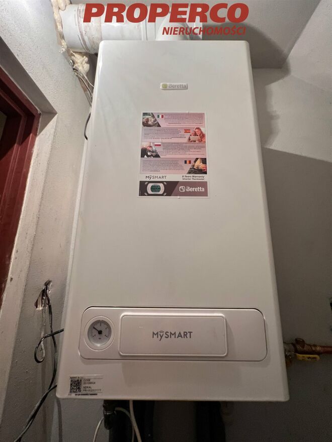 Działka, na której wybudowano dom jest ogrodzona (mur z czerwonego piaskowca), narożna. Brama wjazdowa z dwóch stron działki. Okna PCV 3-szybowe, na podłogach panele i gres. Materiał konstrukcyjny - cegła, ocieplenie styropian 10 i 12 cm. Ogrzewanie gazowe (gaz doprowadzony do budynku w 2021 roku, zainstalowano nowy piec dwufunkcyjny). W budynku zostały wymienione wszystkie instalacje. Na ścianach został położony gips.