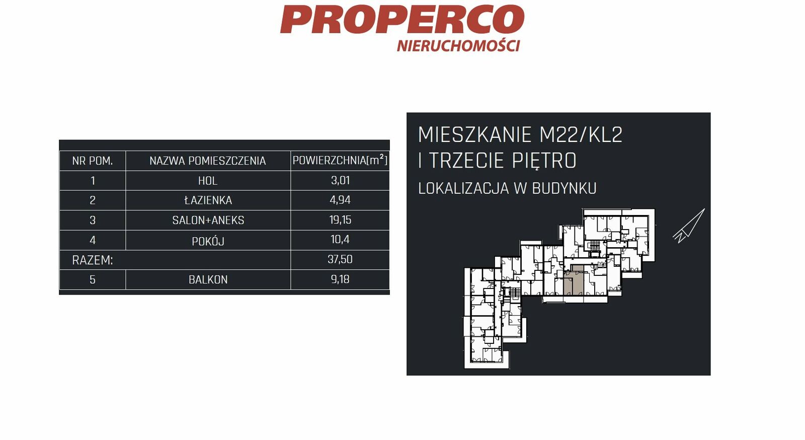 - balkonu o pow. 9,18 m2.